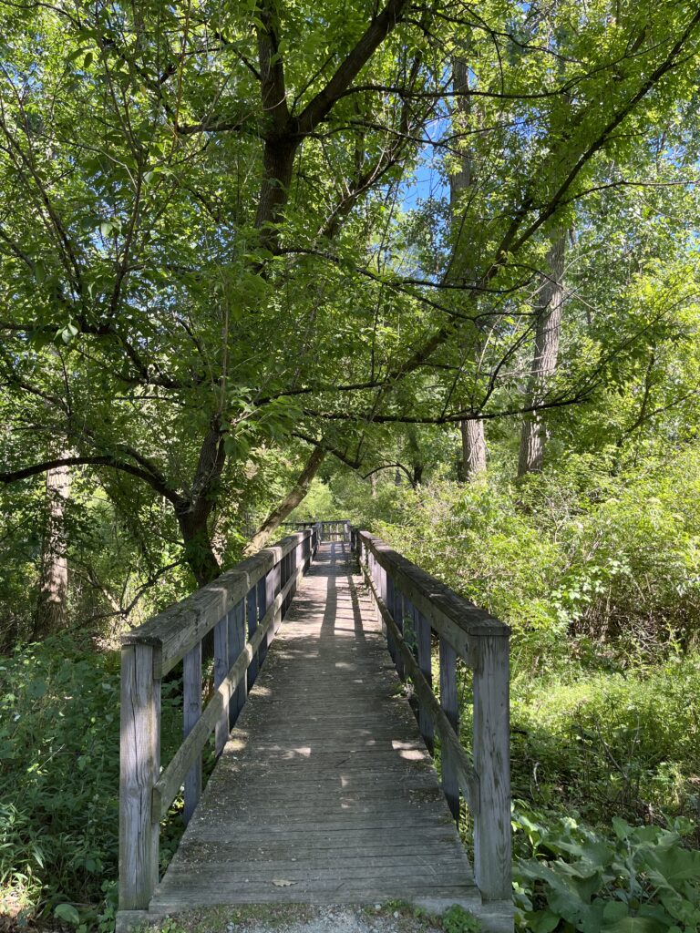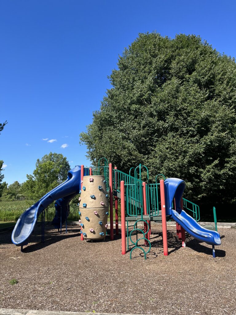 Extensive landscaping gives this park a mature appearance. One of the most attractive passive recreation areas is a wooden walkway leading through a wetlands area to a large gazebo. Quiet observers can glimpse deer and pheasants that live in the area.