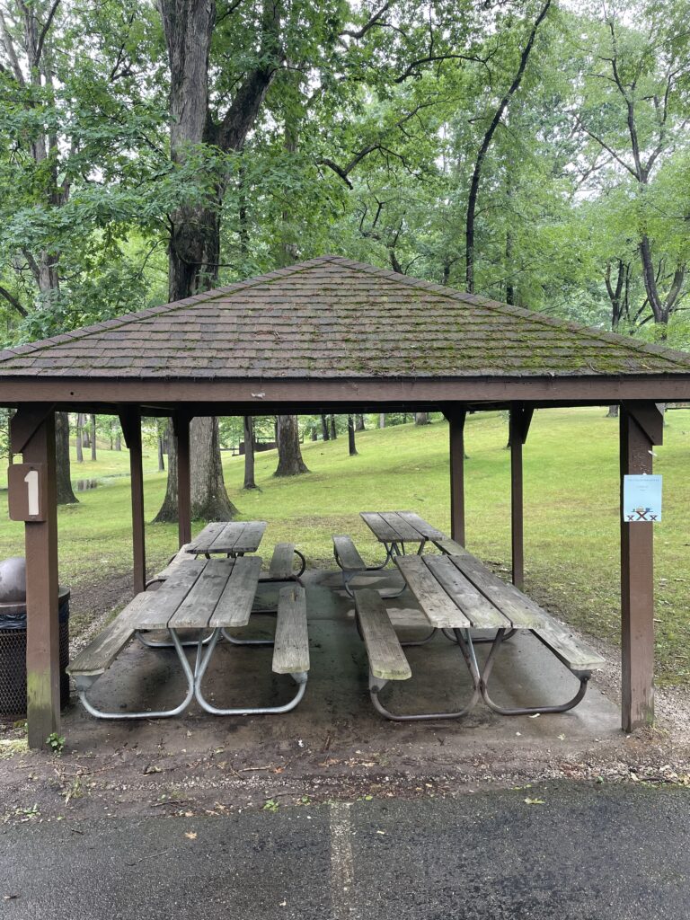 Shelter #1 – Seats up to 32 people, NO electricity, NO grill