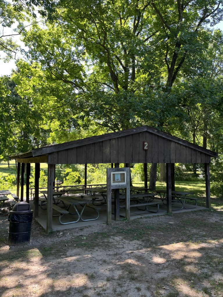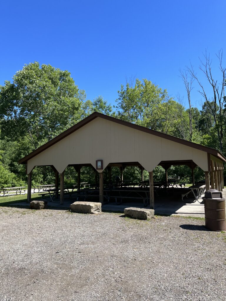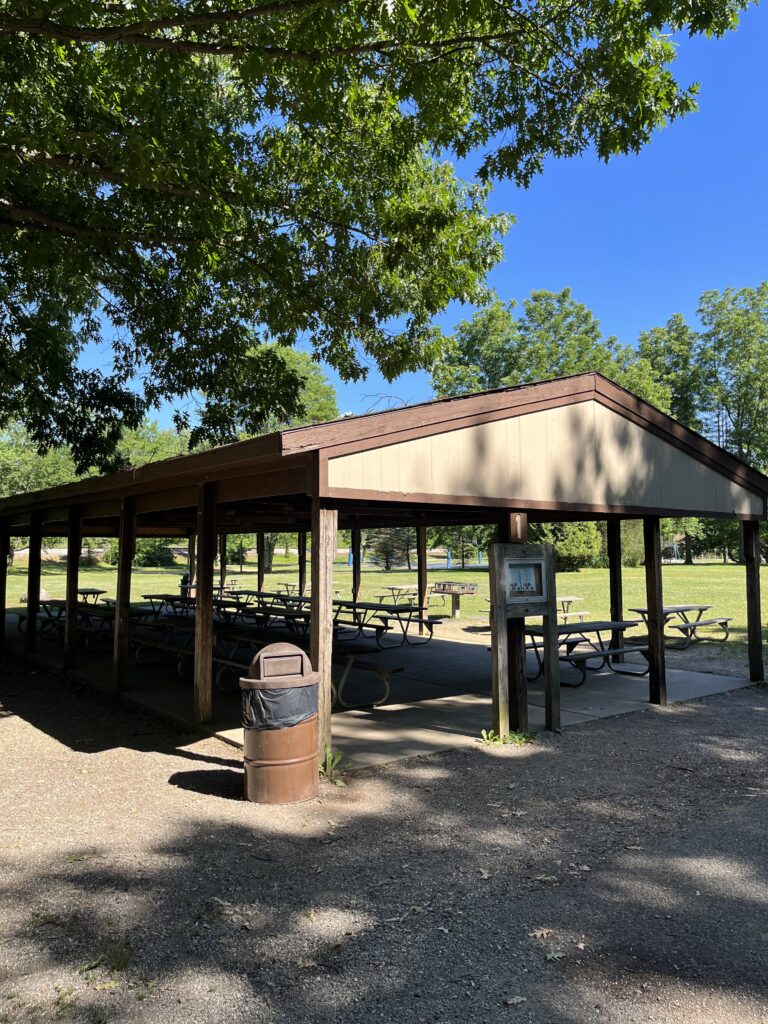 Shelter #1 – Seats up to 168 people, has electricity, includes grill